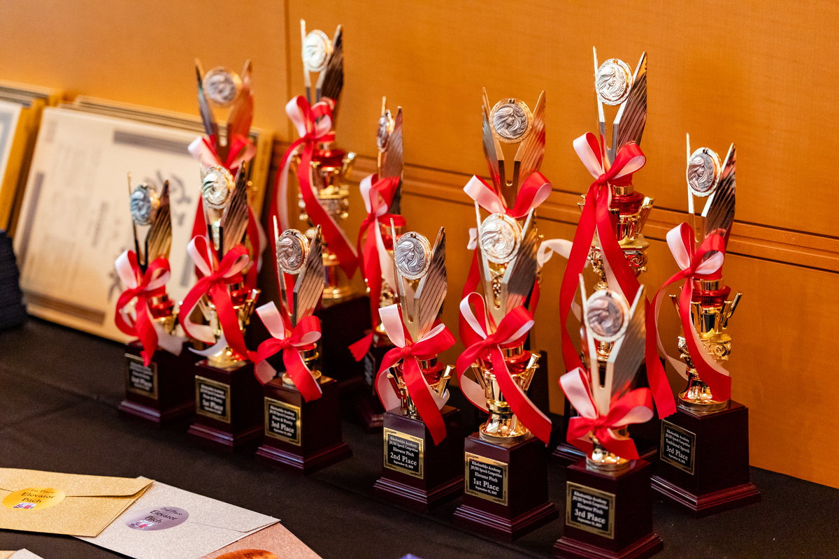 コンテストの最後には、各部門の受賞者が発表されるとともに、会場は大きな拍手に包まれました。ステージに上がり表彰される生徒たちの顔には、満面の笑みが広がっていました。各部門の優勝者には努力と健闘を称えて、トロフィー、優秀賞の証明書(Certificate of Excellence)、そしてギフトカードが贈られました。