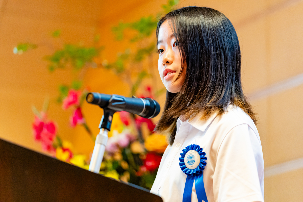 中学1~2年生トラディショナル・スピーチ部門の優勝者Hinanoさん